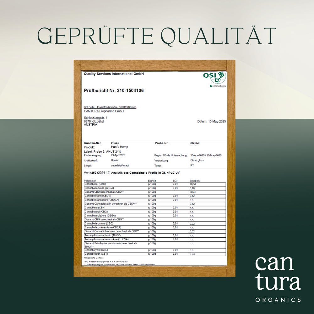 Ihr wolltet ein noch kräftigeres Cantura Bio-Hanföl und zusammen mit euch haben wir das Cantura Akut 24 entwickelt.